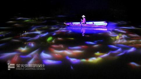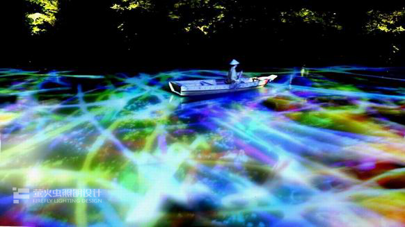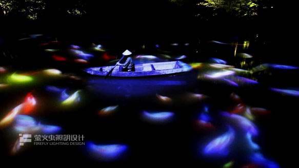 本作品以數(shù)位影像投射在御船山樂園內(nèi)的池塘水面上來表現(xiàn)的作品。水面會變成有如觸碰螢?zāi)话憔哂懈袘?yīng)功能,被投射在水面上的鯉魚會受到在池面上行進(jìn)中的小船們的影響產(chǎn)生互動而游動。